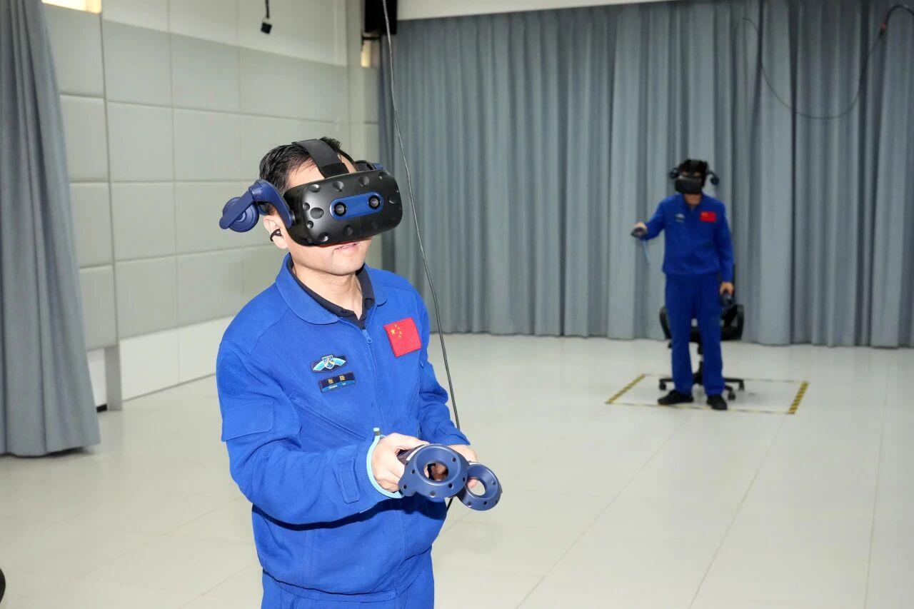 △航天员张陆在进行虚拟现实训练