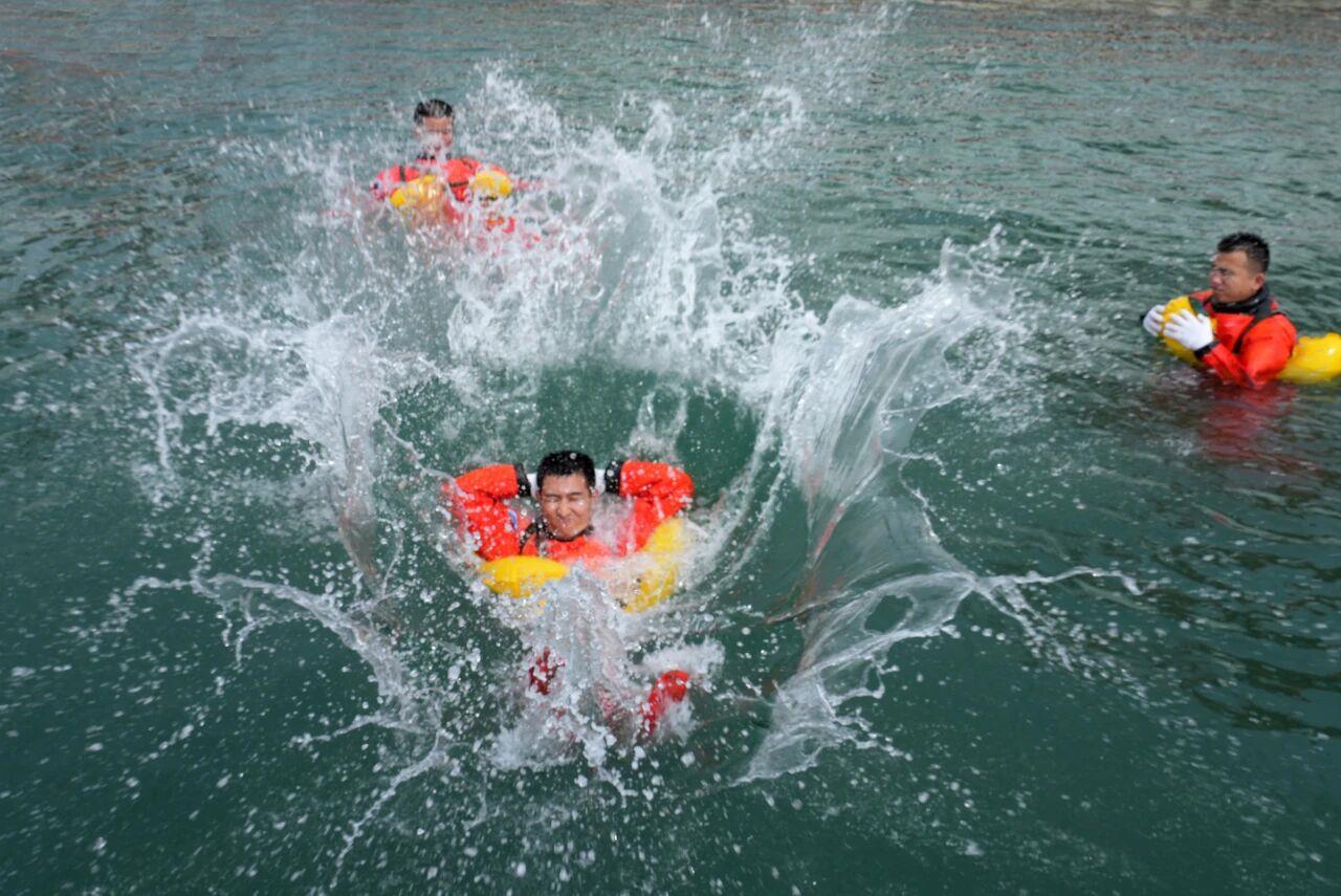 △航天员武飞在进行海上救生训练