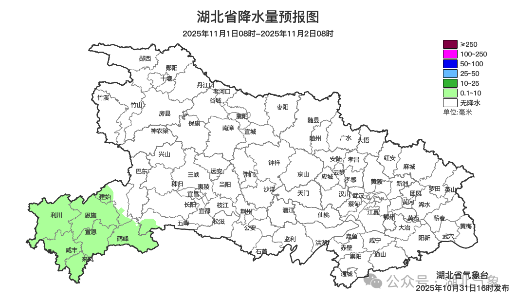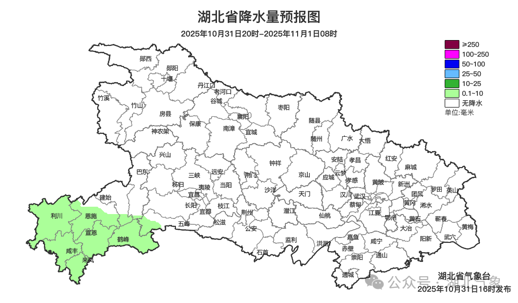 预报来源:湖北省气象台2025年10月31日16时预报
