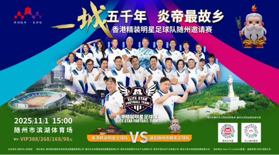 11月1日,香港精装明星足球赛随州邀请赛将在随州市滨湖体育场震撼开赛。届时,由主演《唐伯虎点秋香》《鹿鼎记》的陈百祥、执导《赌神》《九品芝麻官》的著名导演王晶、因《天龙八部》段誉一角爆红的陈浩民、凭借《功夫》中“琛哥”出圈的陈国坤,以及苑琼丹等众多香港艺人组成的明星足球队,将与湖北随州市精英足球队展开一场精彩的友谊对决,为市民献上一场体育与文艺交相辉映的全民盛宴,一起期待吧!