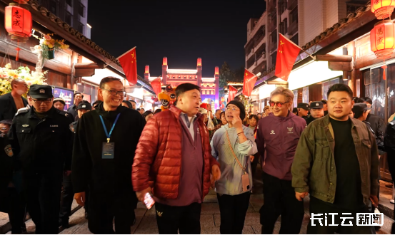 夜幕下的草甸子街流光溢彩,汉东楼巍然矗立,舞龙舞狮、城墙光影秀等特色活动轮番上演,街头巷尾洋溢着欢声笑语。“之前我在网上看过随州草甸子历史文化街区,没想到这么漂亮。”香港知名艺人陈浩民由衷赞叹。