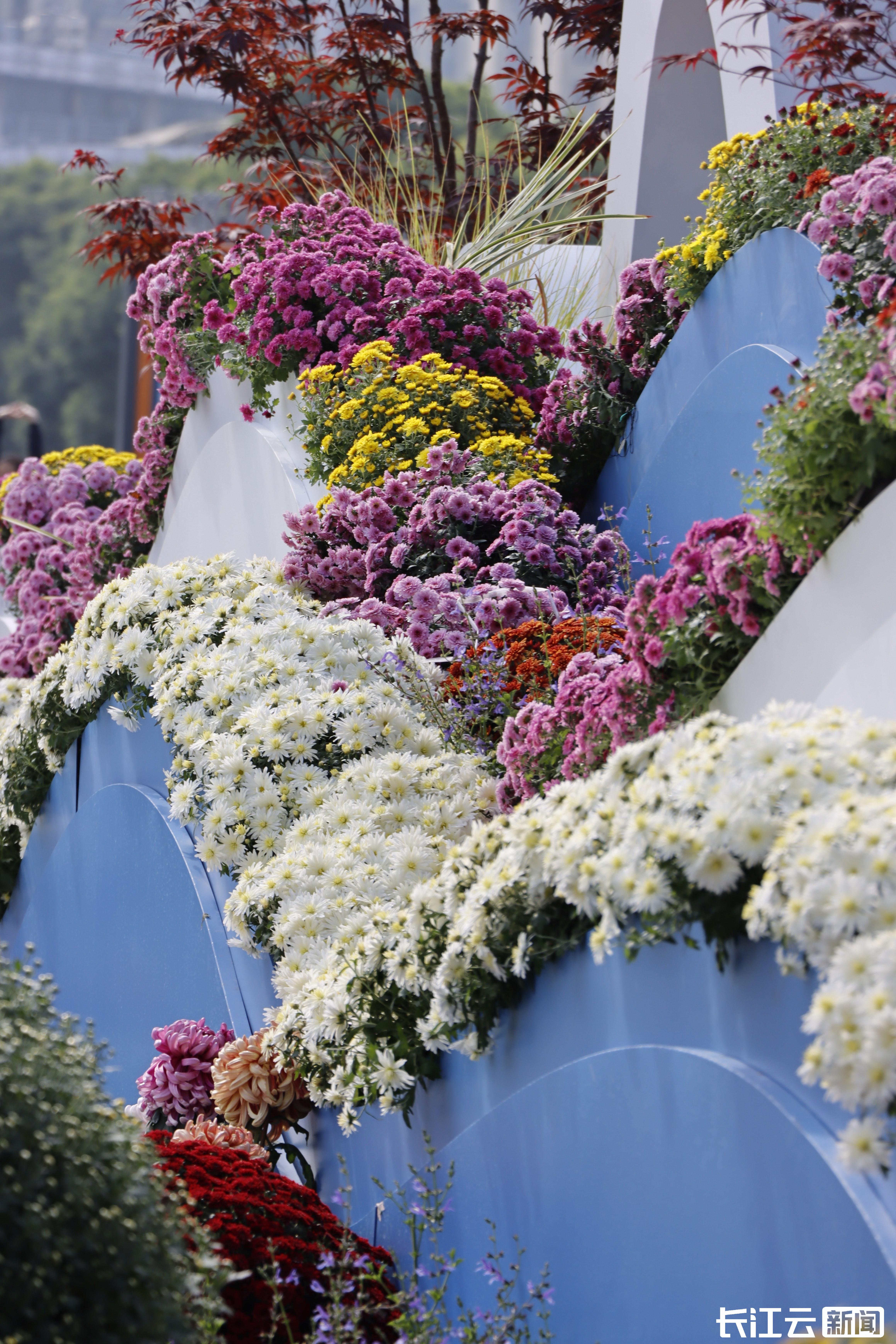 “这菊花蛮美,摆的也蛮有特色的,我刚到武汉,真的眼前一亮。”刚走出车站的张先生站在菊丛前,镜头对准一朵盛放的菊花,让初到江城的他瞬间被这份热烈的秋意打动。