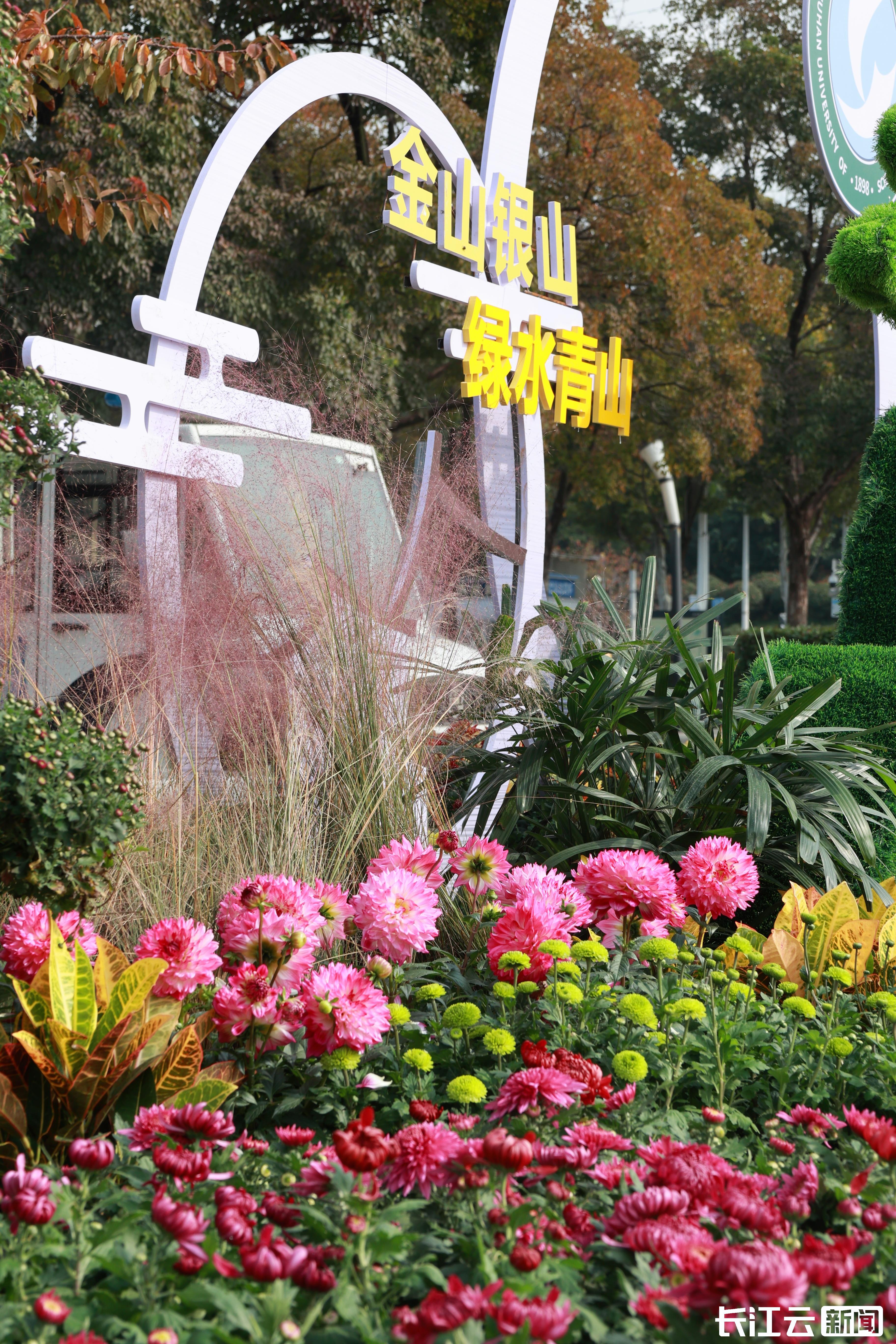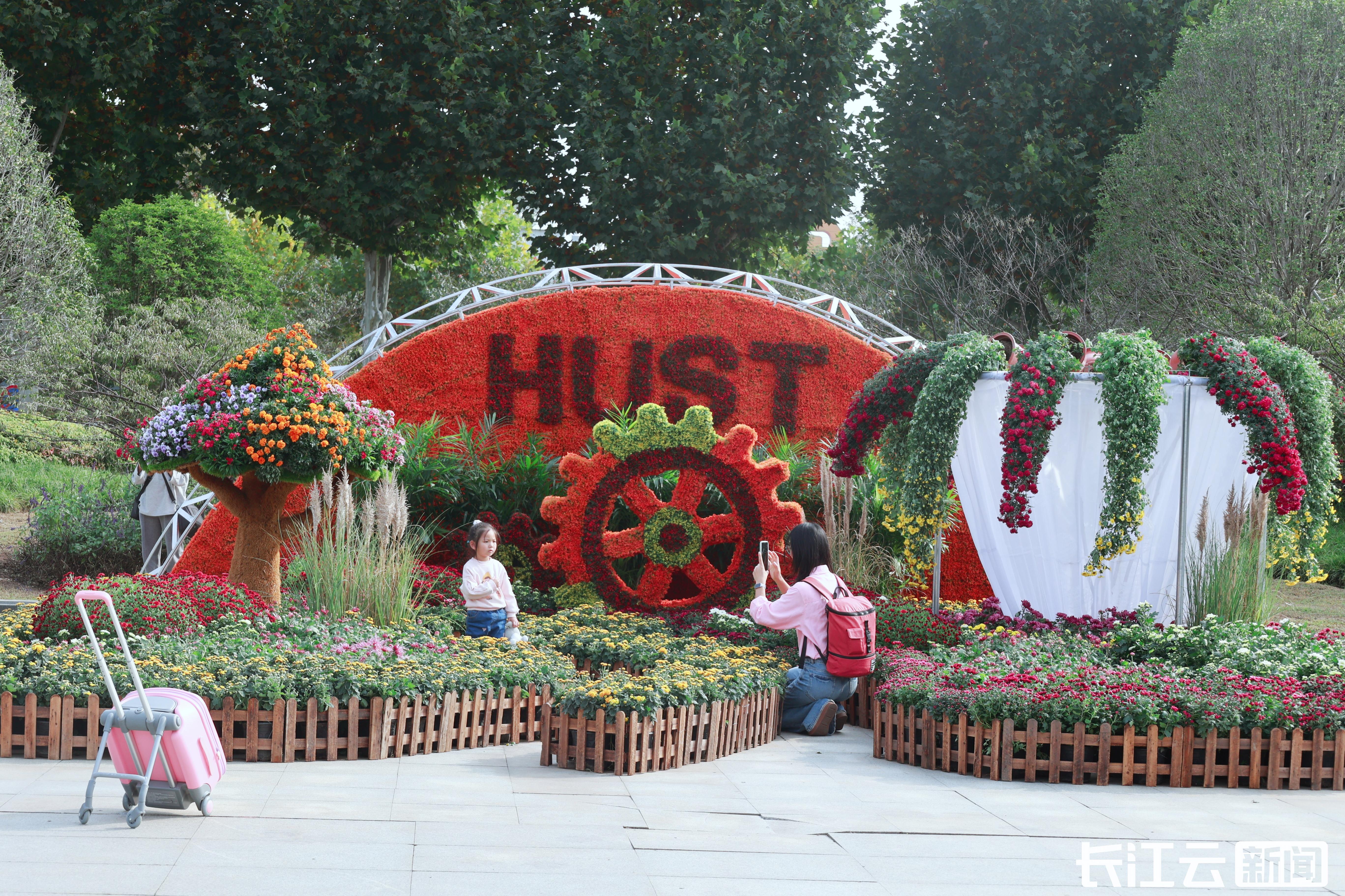 在武汉站东广场,240平方米的金秋菊展正以“洪山大学之城”为核,在城市门户处铺展一幅菊韵盎然的人文长卷。