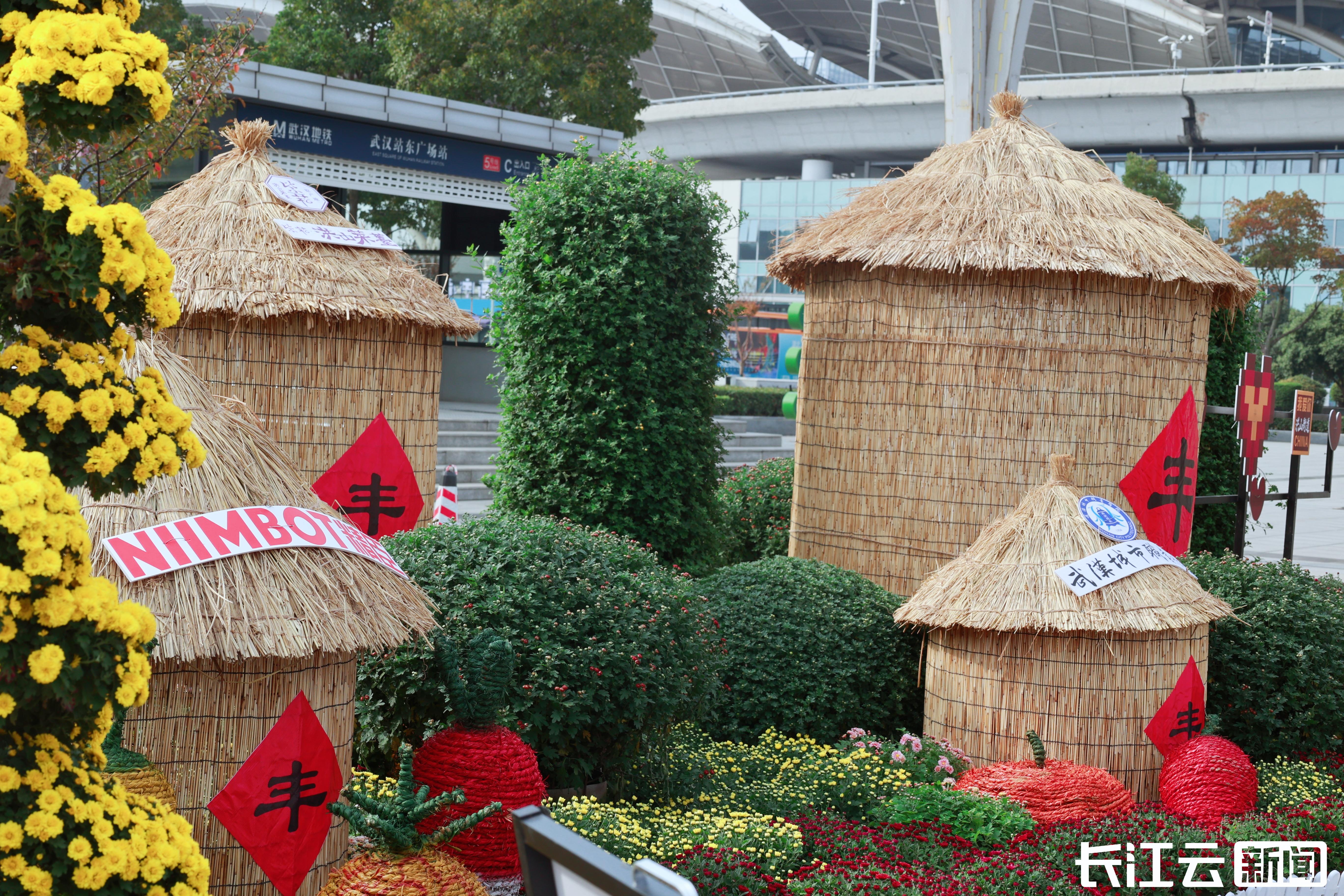 今年是武汉市洪山区第38届金秋菊展,以“金菊璀璨映江城 百姓园林绘新篇”为主题,在武汉站东广场将菊之美与地域特色揉成一幅立体画卷。