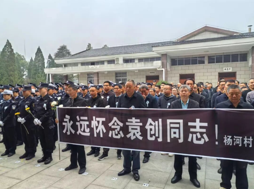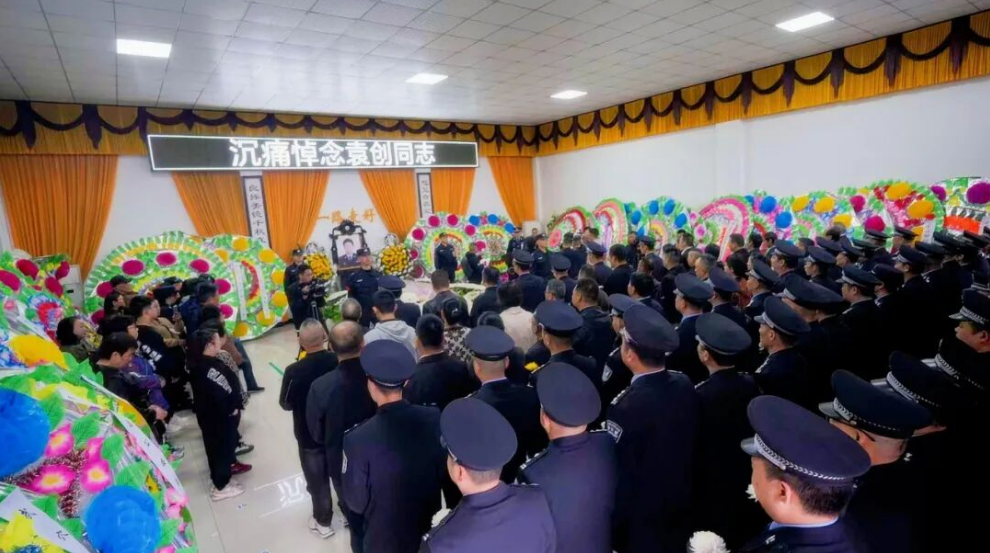 11月1日8时,湖北省英山县殡仪馆内庄严肃穆,哀乐低回,英山县公安局金家铺派出所所长袁创的遗体告别仪式在这里举行。近500名袁创生前的同事、同学、亲朋以及闻讯赶来的群众前来为他送行。