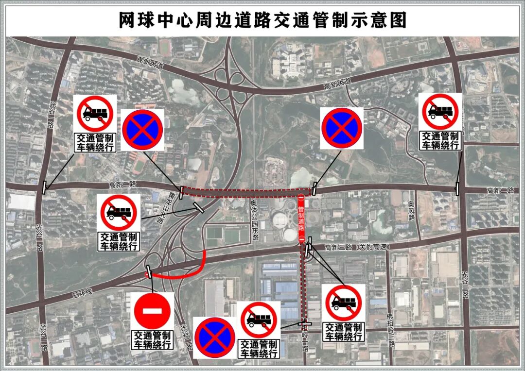 (2)关豹高速佛祖岭一路立交往网球中心匝道采取临时交通管控措施,禁止车辆通行。