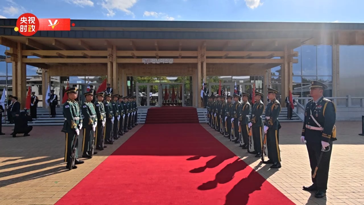 当地时间11月1日下午,国家主席习近平在庆州博物馆出席韩国总统李在明举行的欢迎仪式。