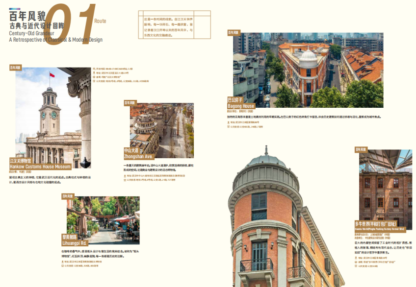 “百年风貌”路线:从江汉关博物馆的古典主义钟楼出发,途经中山大道连绵的骑楼、廊柱形成的空间、黎黄陂路的街头博物馆,再到巴公房子的三角形经典建筑与多牛世界的工业遗存活化项目,每一处都镌刻着东西文化交融的痕迹,堪称一部“可步行的武汉近代设计史”。