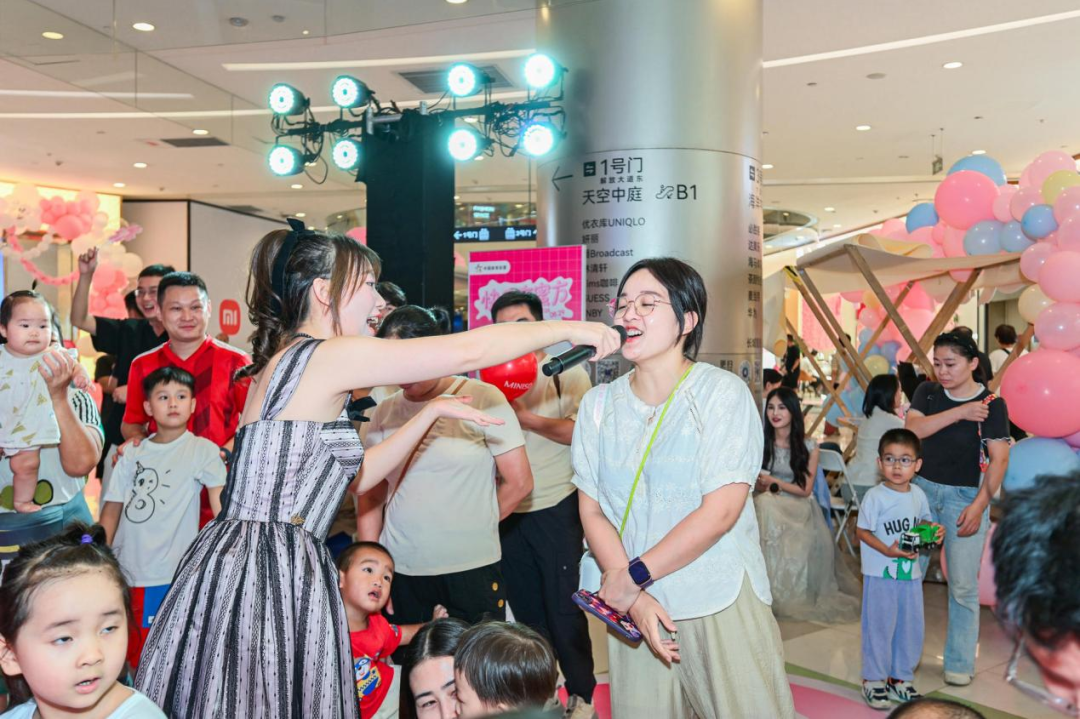 活动现场还设置了六大主题互动区域,以“收集甜蜜元素”打卡集章为主线,每个游戏对应一种“蜜方成分”。市民通过参与趣味游戏收集印章,集满所有印章即可参与终极互动:叮铃一声,“摇铃开盲盒”,唤醒意想不到的惊喜;在“爱的抱抱墙”合影,把温暖瞬间“晒”进朋友圈;试试“愿者来上钩”,手速快才是真本事;或者来一记“心动全垒打”,用巨型球推开烦恼、释放压力。互动区域鲜明亮丽、趣味十足,吸引众多家庭和年轻人驻足体验,拍照分享不断。