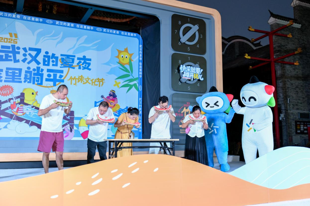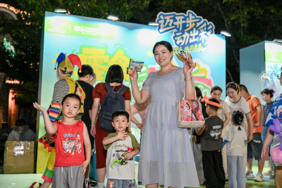 趣味游戏区成为市民参与焦点。“吃瓜大作战”中,参与者尽情体验夏日乐趣,现场笑声不断;“竹床藏欢乐”活动设置悬念,市民俯身探寻竹床下方的惊喜卡片,欢呼声此起彼伏。此外,“童趣转不停”“零食铲铲铲”“欢乐蹴鞠赛”等特色项目吸引不同年龄段市民参与,“怀旧时光集”中的“好运‘弈棋’来”环节,让大人小孩同台对弈、乐在其中。市民可凭参与游戏获得的“复古乐透粮票”集章,兑换童年零食与玩具,延续活动欢乐。