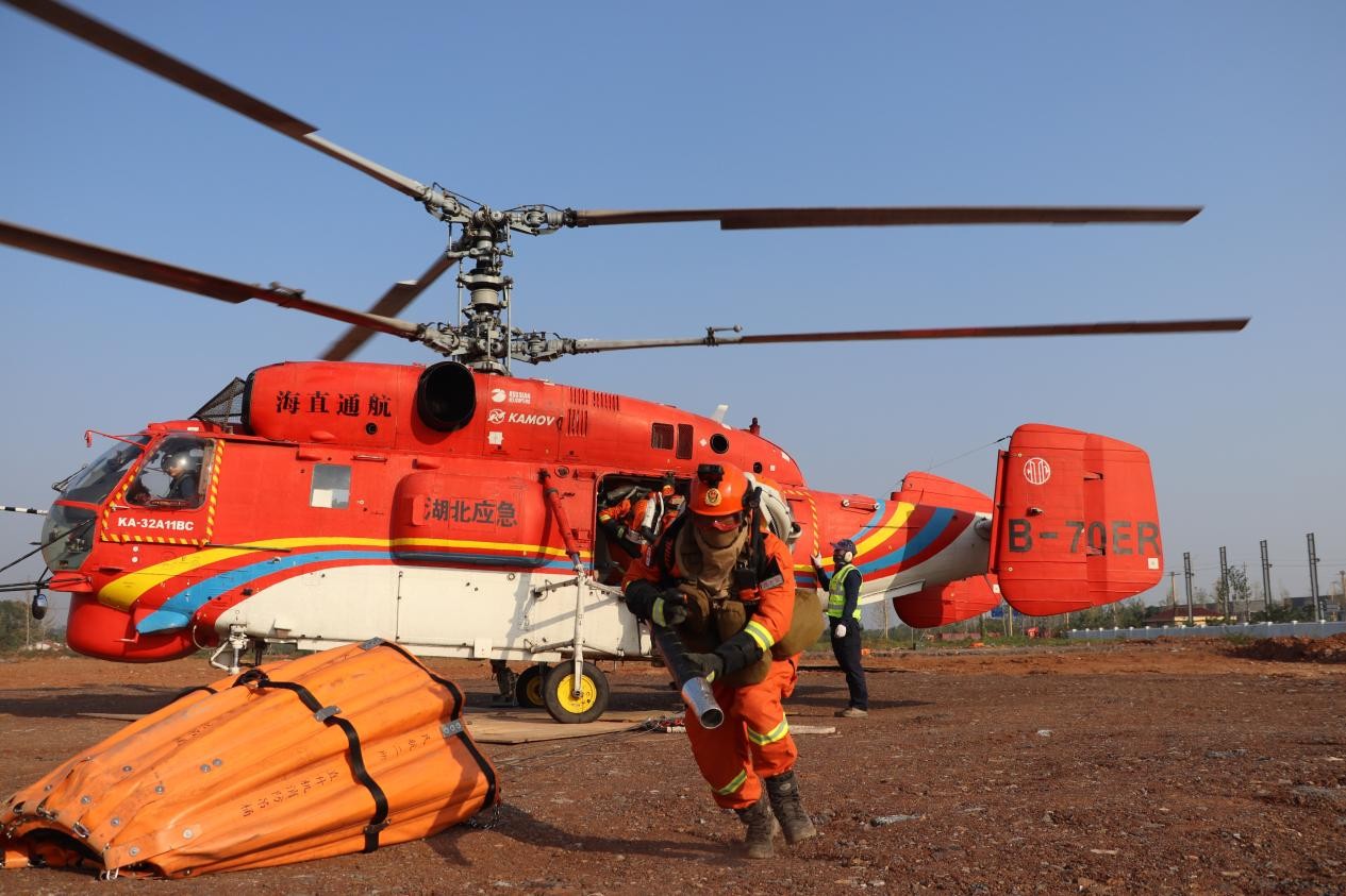 10月30日上午10时,一架Ka-32直升机在巨大的声浪中缓缓降落于一处平坦地面,几十名背负森林灭火装备的救援队员鱼贯而出,迅速扑向不远处的山火燃烧点……这是2025年湖北省森林火灾应急预案演练的现场,一场村级上报、镇级先期处置、县级响应、省市县联动增援的森林火灾救援演练就此展开!
