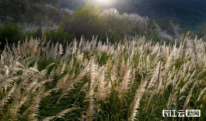在阳光的照耀下,斑茅花的细绒毛反射出迷人的色彩,为秋日营造了别样的浪漫唯美氛围。