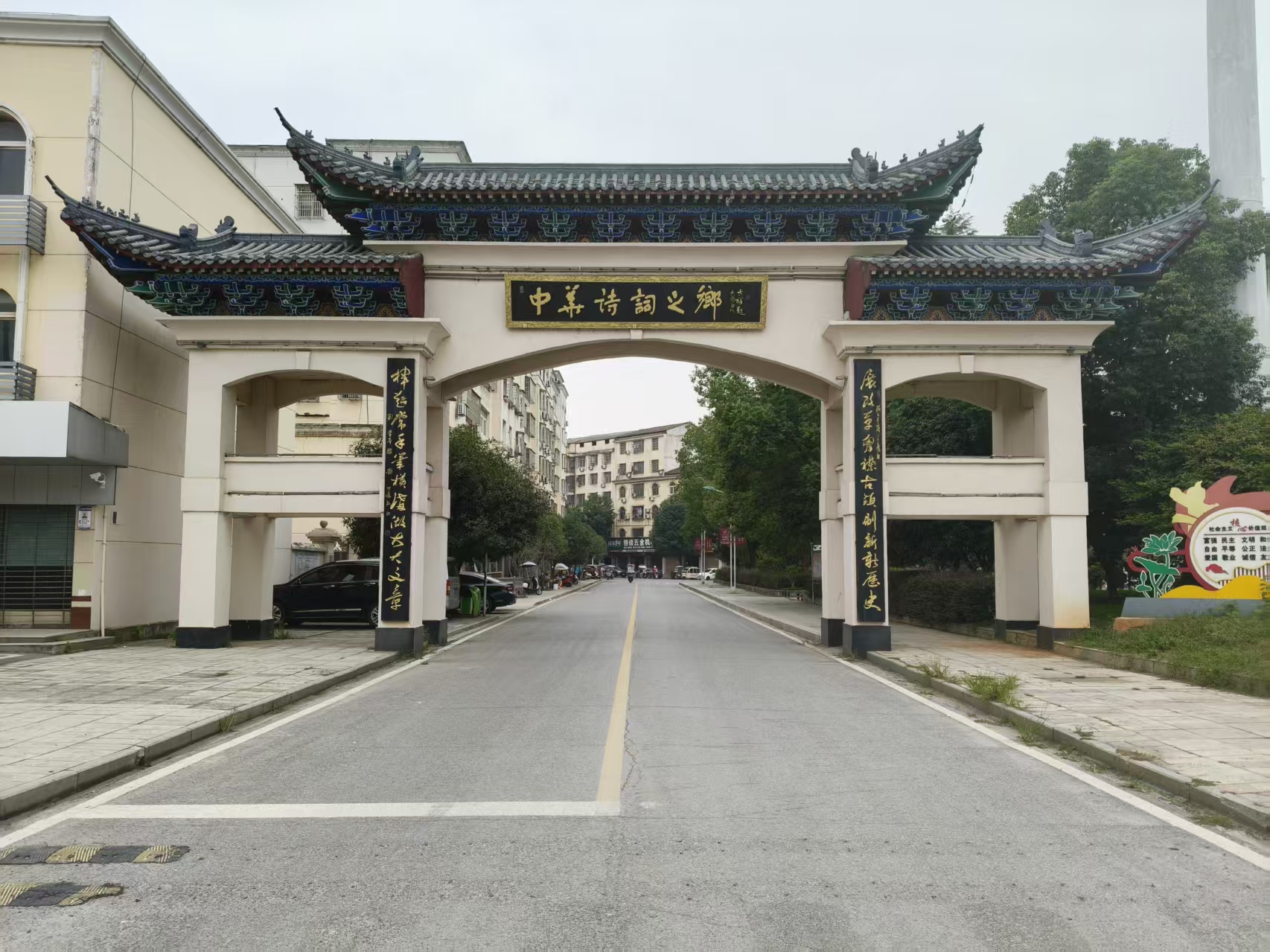 从107国道右转,穿过中国诗词楹联之乡的门楼走200米,来到诗歌文化广场。只见广场上古树参天,绿荫掩映,随处可见诗词屏风和宣传栏,有热劲十足打威风锣鼓的,挥汗如雨打羽毛球的,还有带着孙子逐句教读诗的……阵阵文化书香扑面。