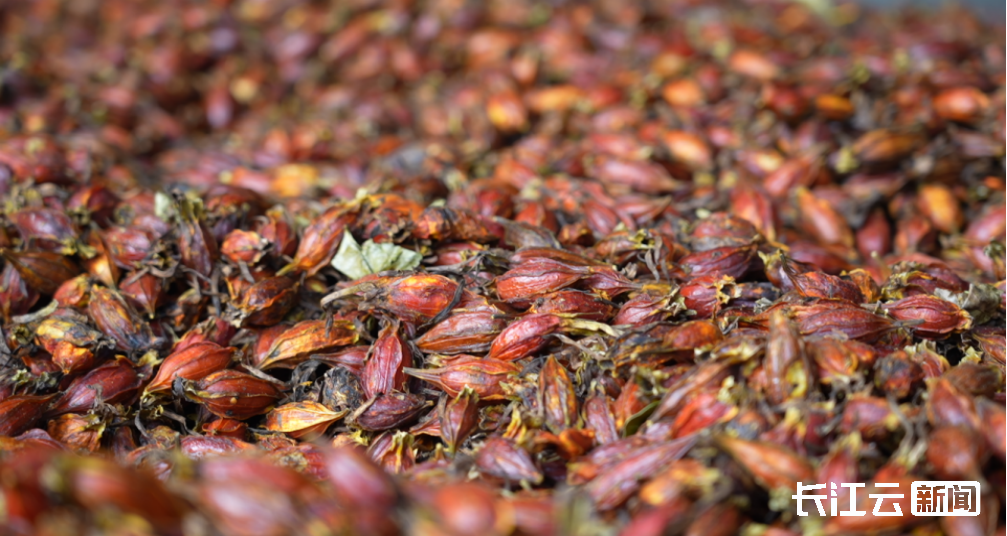 收购的新鲜栀果经筛选、清洗、蒸煮、烘干等工序,加工成价值更高的干栀果、栀子黄色素等产品,市场需求旺盛、价格稳定。“我们的水栀子主要用于色素生产,像韩国泡菜、栀子饮片茶,还有香料、卤料染色都能用。”合作社总经理李衡说。