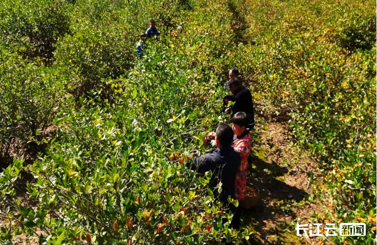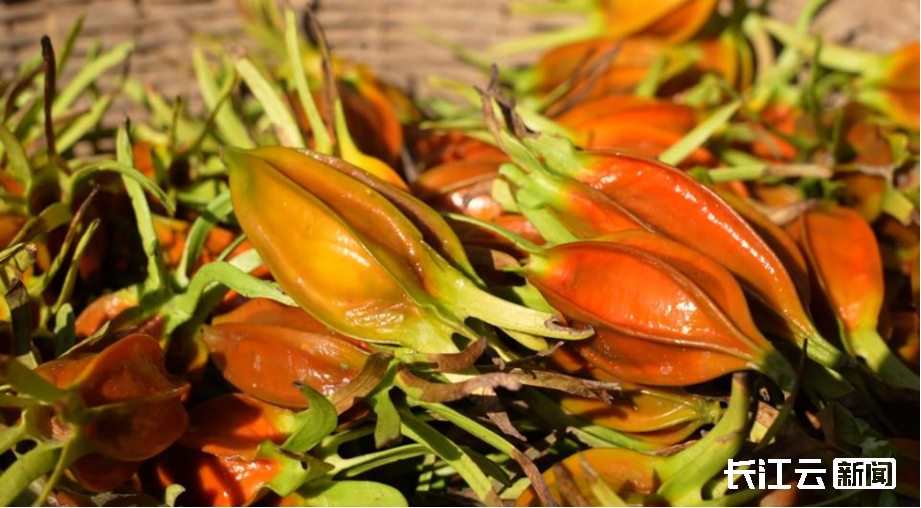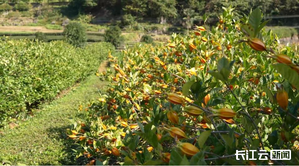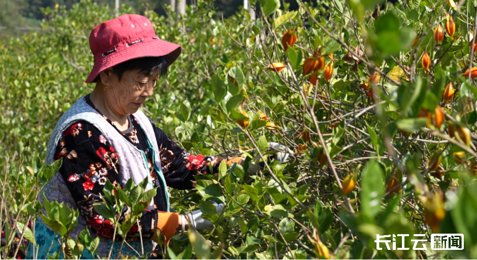 在湖北长阳都镇湾镇杨柘坪村、峰岩村的栀果种植基地,连绵的栀果树随风摇曳,金红色果实饱满诱人。村民们手持篮筐穿梭在栀园,熟练地采摘、分拣、装运。