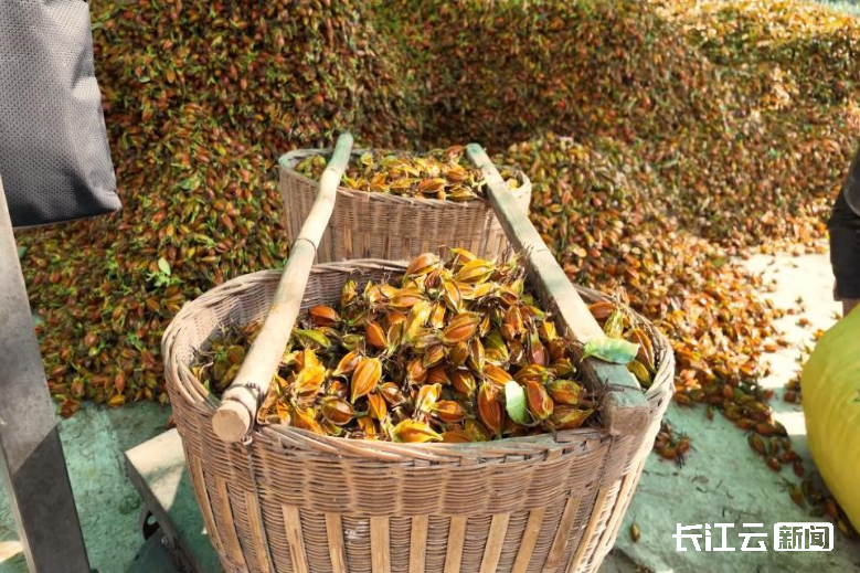 栀果作为常见的中药材,既是天然色素栀子黄的原料,又广泛应用于酿酒、食品、医药等领域,经济价值高、前景广阔。在恒鑫栀果种植专业合作社院内,挎竹筐、推板车的栀农络绎不绝。他们将新鲜栀果送往收购点,工作人员麻利称重、登记,当场现金结算。今年栀果刚开秤,就吸引河南、浙江等地厂家争先收购,预订单超3000吨。“初烘干后,产品会发往江西、福建、河南、广西等地。”合作社经理李勇智介绍。