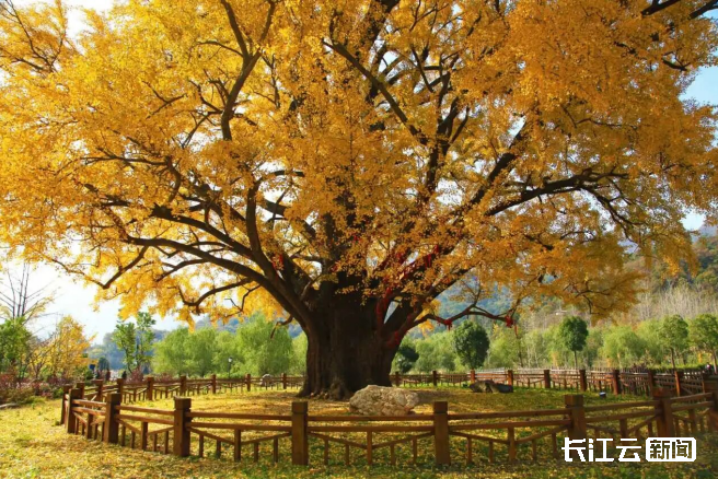 在随州,两大银杏盛景交相辉映,构成了“银杏之乡”金色画卷。洛阳镇的千年银杏谷内,520多万株银杏树铺展成无边叶海,1.7万多株百年古银杏与308株千年古树交织成金色天幕,其中最高树龄近3000年的古树,枝干遒劲如盘龙,满树金黄诉说着岁月沧桑。作为被世界纪录协会认证的“世界最大古银杏景区”,这里的“五境十二景”让游客在赏景之余,还能聆听曾侯乙编钟的千年雅乐。