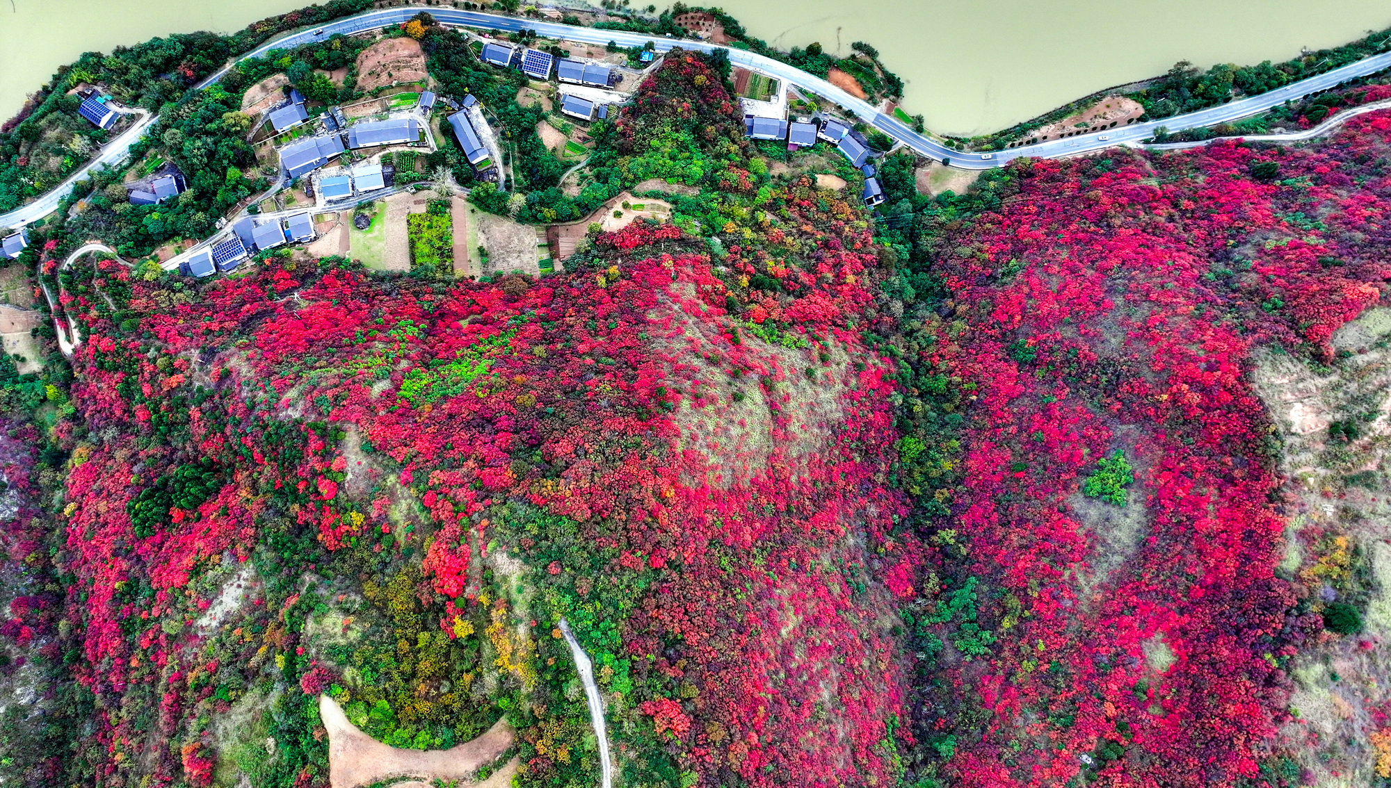 秋意渐浓,又到了观赏红叶的最佳季节。11月1日,十堰市郧阳区城关镇金岗村与马场关村的山坡上,层层叠叠的红叶如火似霞,与翠柏等树木相互映衬,红的热烈、绿的沉静,大地仿佛打开了五彩缤纷的调色板,勾勒出一幅色彩斑斓的秋景图,吸引众多摄影创作者前来打卡。