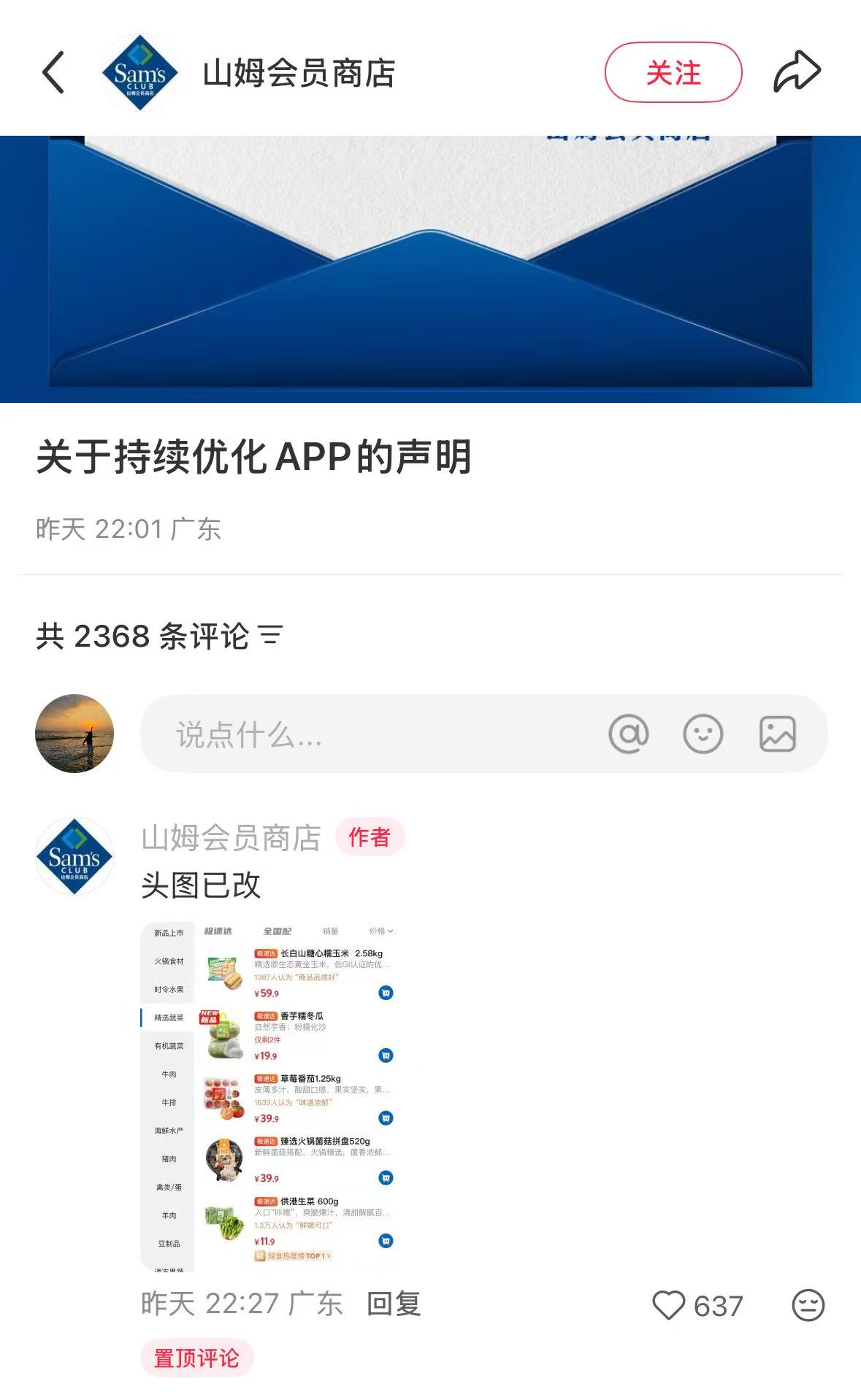 长江云新闻报道山姆“商品图问题”后,山姆:头图已改,后续将持续改进体验