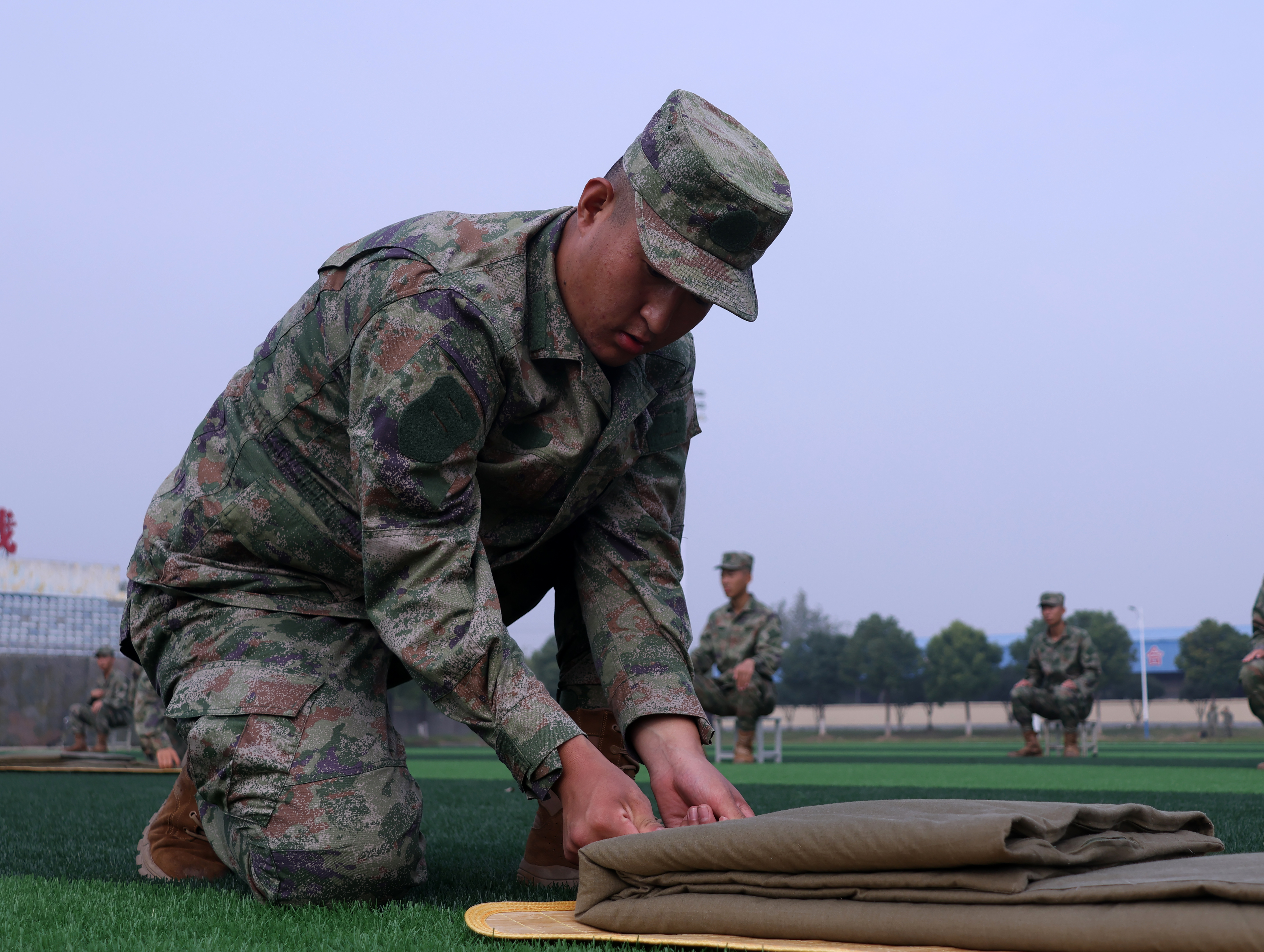 评委进行评判时,严格用尺量角度,用手抚边线,分毫之差,都是胜负的关键。这项看似简单甚至有些枯燥的训练,对这些“00后”新兵来说,意义早已超越其本身。在日复一日的压、折、修、整中,他们学会了什么是标准与坚持,更领悟了军人特有的细腻与专注。