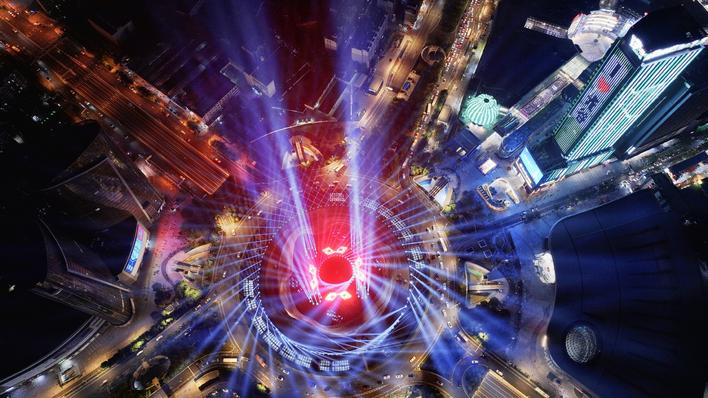 光谷星河广场灯光秀。 (陈少哲 摄)