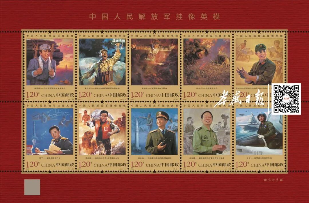 ▲《中国人民解放军挂像英模》纪念邮票套票版。全媒体记者吴垠 摄
