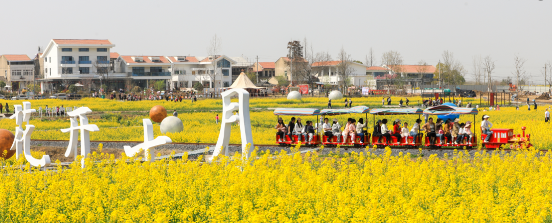 ▲游客乘坐稻田小火车欣赏美景。特约记者彭双明 摄
