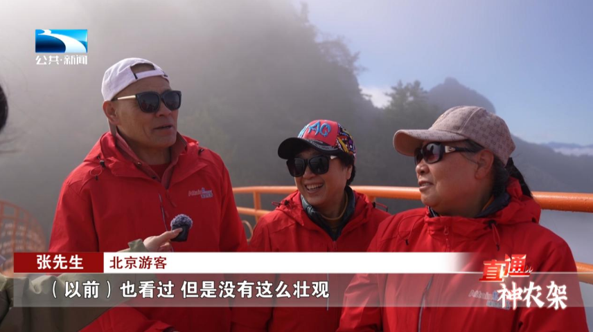 湖北文旅神旅集团神农架文旅推介官 陈发敏:我们这边海拔的垂直落差达到了2700多米,海拔不一样,它分配的植被就不同,到了秋季整个色彩就会很丰富,怪不得,所以他们都说秋天像个调色盘一样,秋景出现的阶段也不一样,可以从10月中旬一直到11月中下旬。