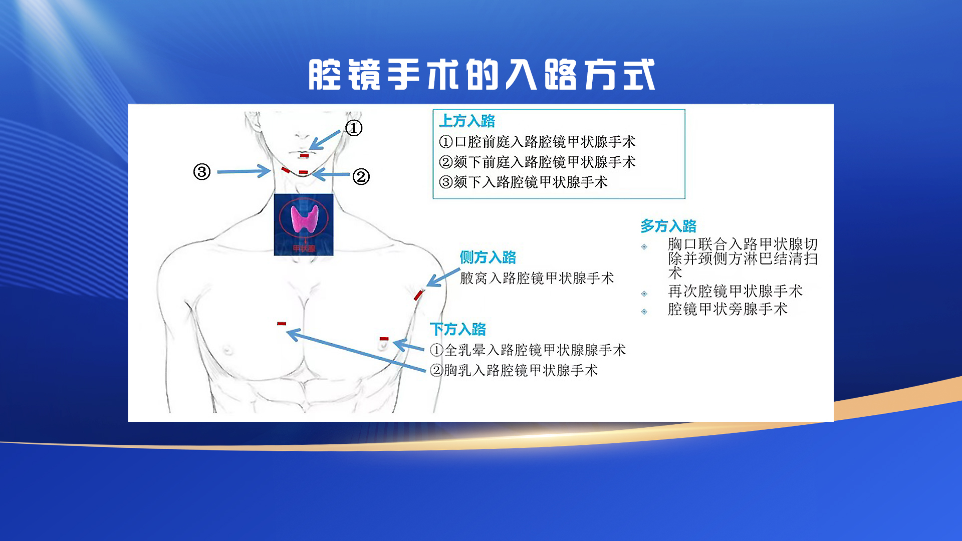 目前的腔镜手术、射频消融术等微创手术,已实现从腋下、口腔等隐蔽部位入路,完全避免颈部留疤。对符合条件的良性结节,射频消融术通过一根细针即可完成治疗,患者可以听取医生建议,根据结节情况、个人意愿和身体条件来综合判断。