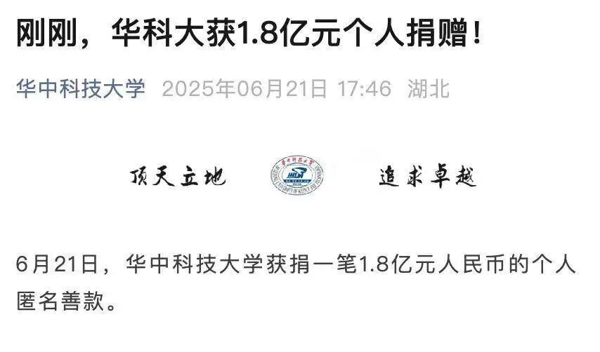 华科大官宣获得匿名捐赠
