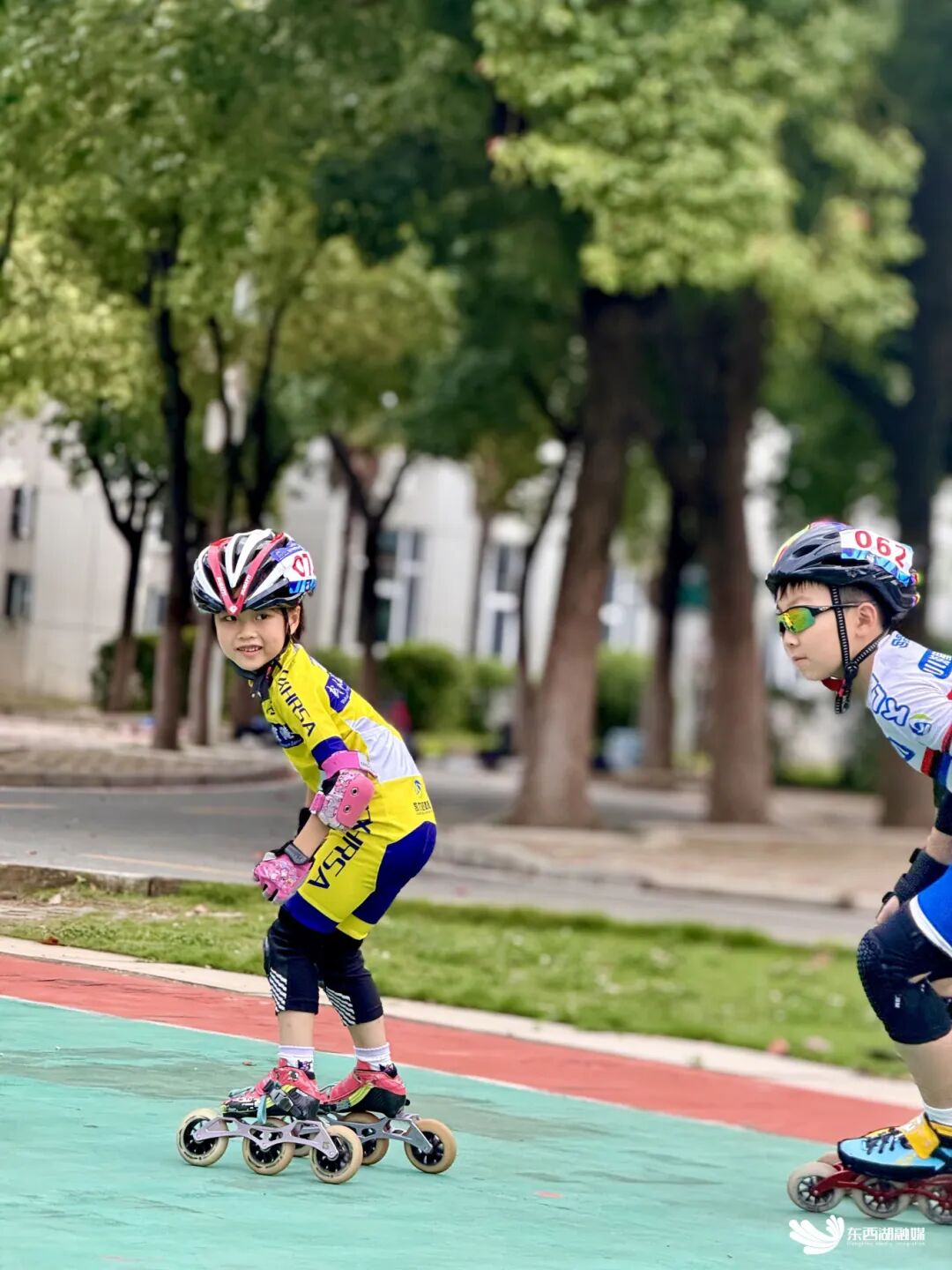 在武汉市第十二届运动会青少年体育类(社会俱乐部组)轮滑比赛中,东西湖选手黄筱悠(左)获U6女子组500米争先赛第一名。