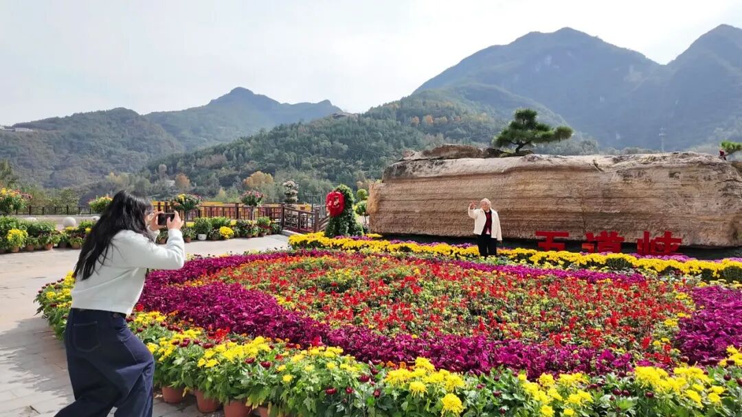 金秋时节,襄阳保康五道峡景区再添新景。为期一个月的“峡藏秋色·菊开成海”秋季菊花展启幕,千余株菊花次第绽放,串联成一条五彩斑斓的花径,吸引众多游客驻足赏秋、拍照打卡。