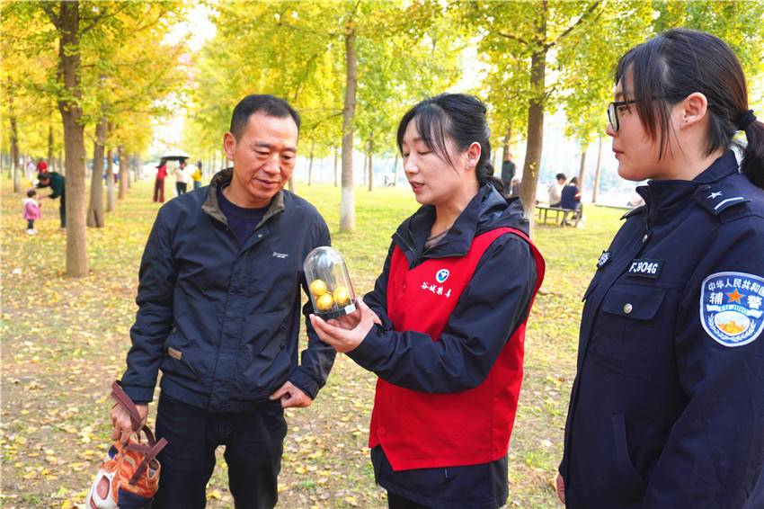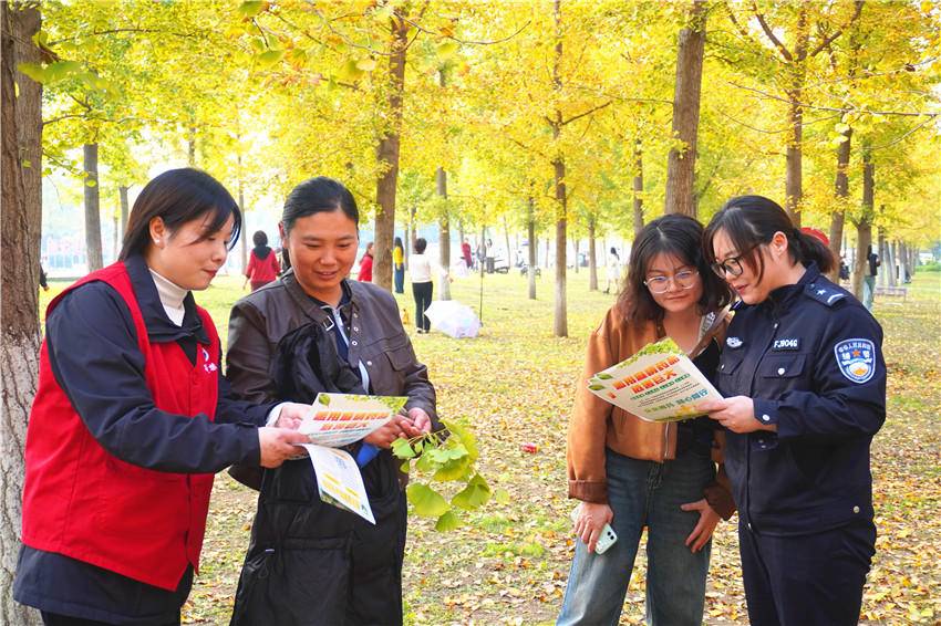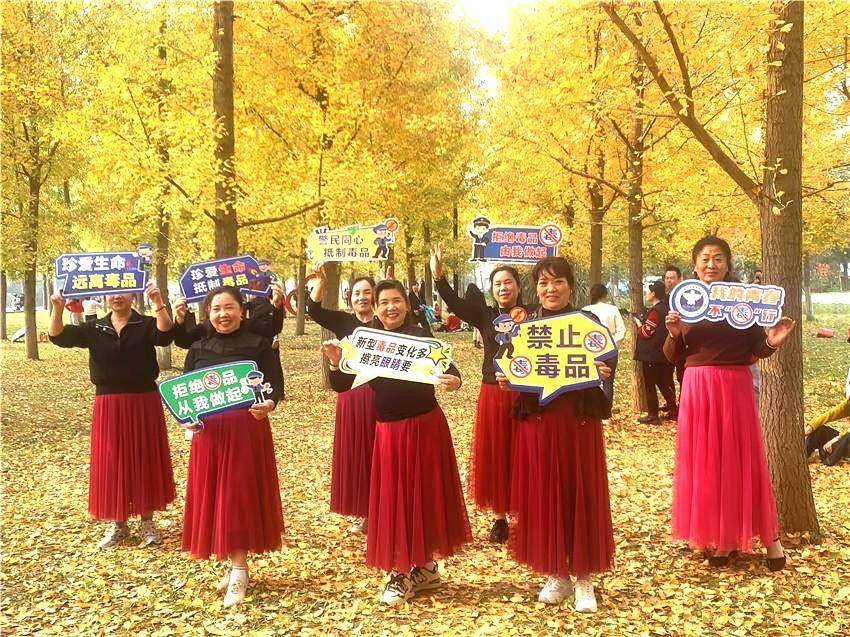 襄阳谷城:金叶漫舞景色好 银杏树下话禁毒
