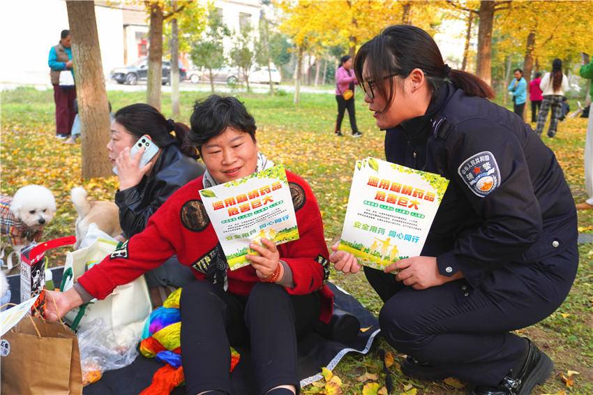 金秋时节,谷城县城关镇茶庵村的银杏林里满目金黄,落叶纷飞如蝶舞,成为赏秋热门打卡地。为让禁毒理念融入群众日常生活,进一步扩大禁毒宣传覆盖面,11月4日,县禁毒办在茶庵村银杏林开展“金叶漫舞话禁毒,全民携手筑防线”主题宣传活动,以沉浸式体验让禁毒知识深入人心。