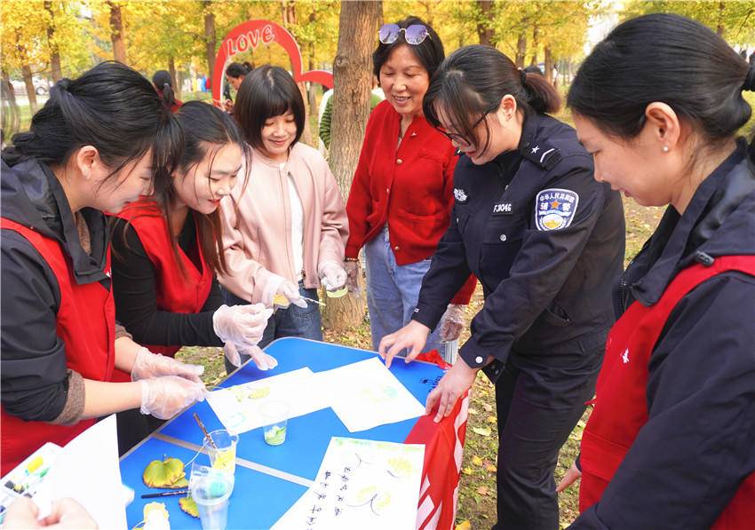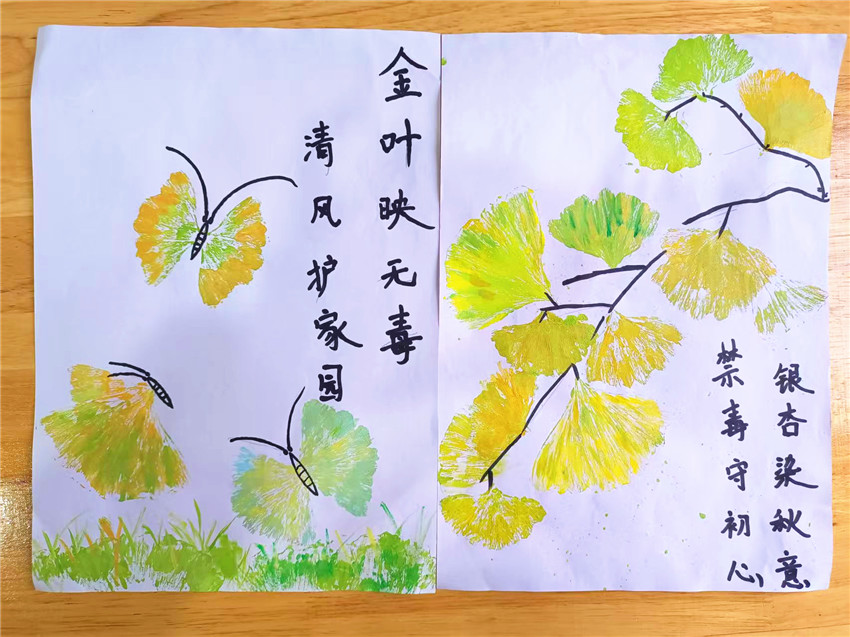 最受欢迎的当数银杏叶拓印画创作环节。游客们手持新鲜银杏叶,蘸取颜料在白纸上轻轻拓印,随后认真书写“金叶拼盾牌,毒品远离我”“银杏染秋意,禁毒守初心”等禁毒标语。一幅幅充满创意的拓印画,成为传递禁毒决心的特殊载体。活动中,大家还积极拍摄作品及仿真毒品展示场景,配文“我用银杏画禁毒,共筑无毒风景线”转发朋友圈,以社交传播的方式让禁毒声音走进更多家庭。