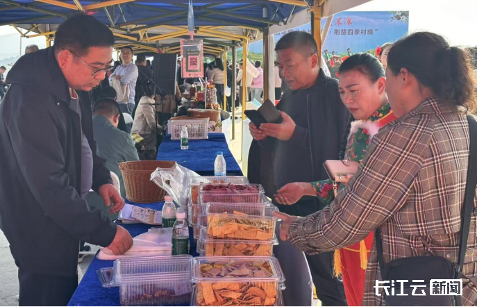 舞台旁边,乡村集市同样热闹非凡,来自各乡镇的特产与美食琳琅满目,香菇、山茶油、腐乳、红薯干等地道“山货”让大家一边看节目一边“买买买”。“每年油茶花盛开的时候我们都要办一场活动,让村民们分享丰收的喜悦,也能吸引大家来我们这里赏茶花、看表演、吃美食。”随县澴潭镇镇长邱锋说。