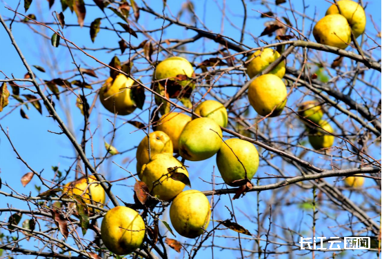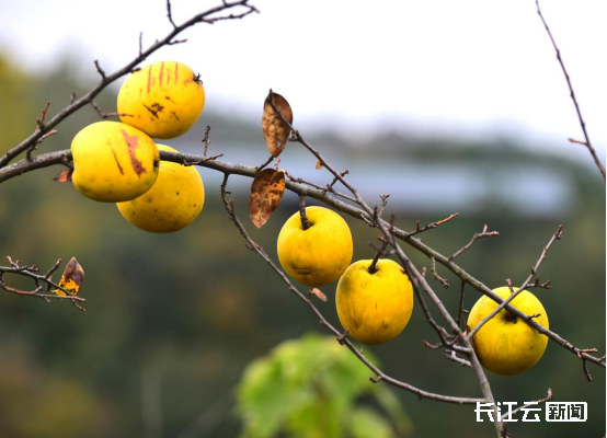 时值秋深,山色依旧苍翠,而那层层叠叠的梯田上,木瓜闪亮登场了。它们不像花那般招摇,却自有一种沉甸甸的、果实独有的风华。有的金黄,像凝固的阳光;有的青中透黄,似未磨的翡翠,晕着柔和的光。一嘟噜一嘟噜地,压弯了遒劲的枝,仿佛整个秋天所有的丰腴与甜蜜,都凝结在这片园子里,风是看不见的,只能从枝叶间细微的摩擦声里,从那一阵阵拂面而来的清芬里,感知它的存在。那香气是独特的,不似花香那般缠绵,倒有几分山泉的清澈,混着阳光的暖意与草木的甘醇,丝丝缕缕,沁人心脾。这香气吸引着你,不由自主地走近,再走近。