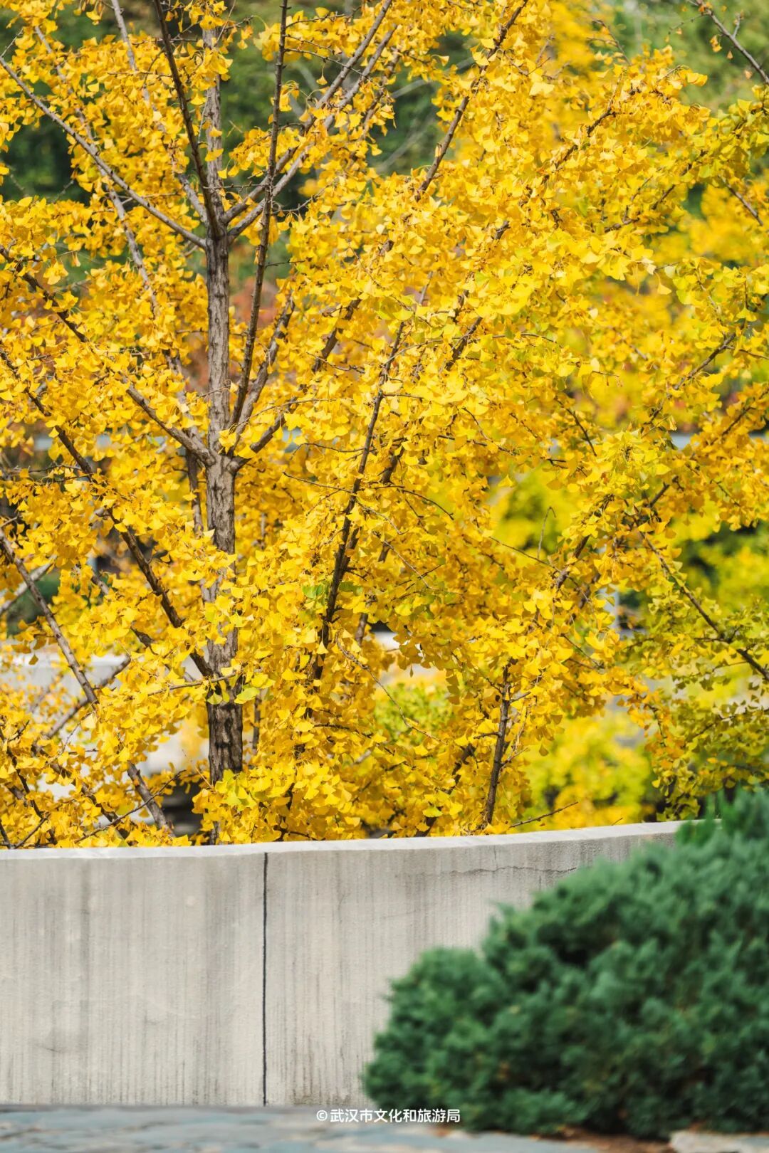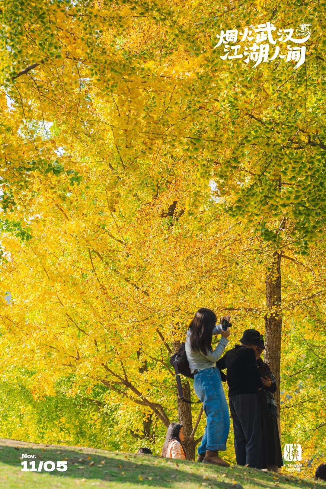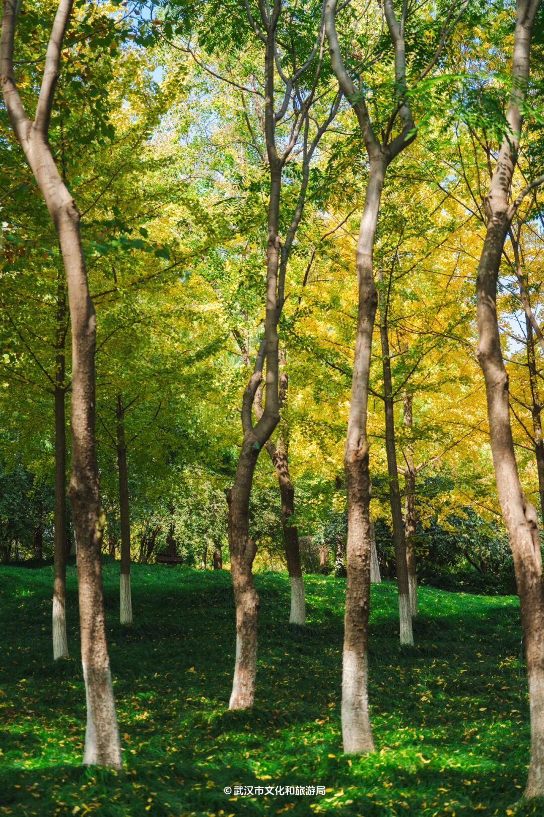 但王家墩公园的银杏变色进度已经过半