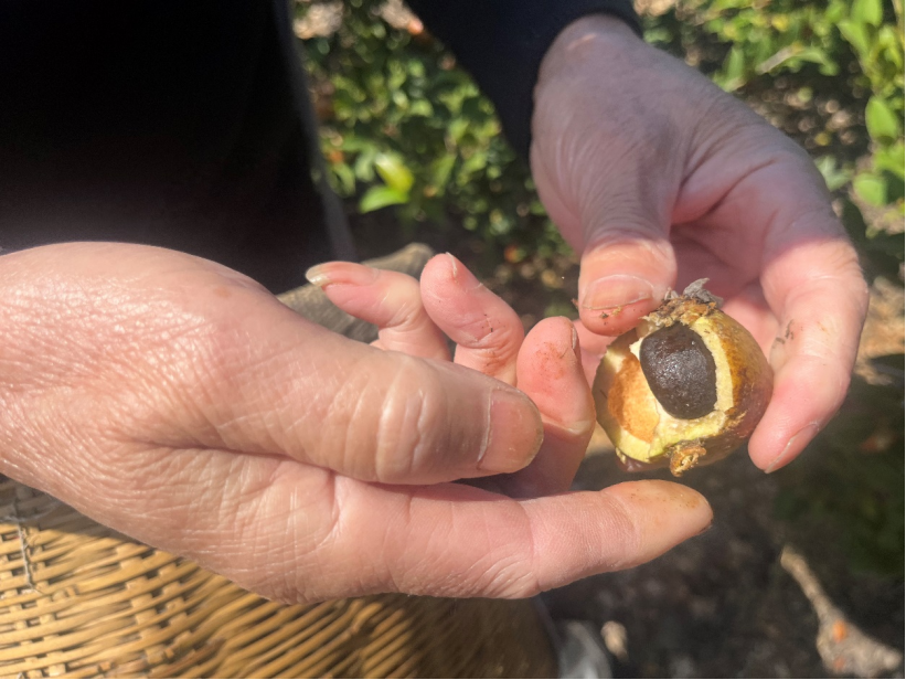 清晨,当深秋的阳光越过山峰,枫林镇樟桥村的油茶林披上了金色的衣裳。枝头累累的油茶果红如玛瑙,压弯了青翠的枝条。村民邹余忠斜挎着竹篓穿行林中,手指在枝叶间灵巧翻飞,一颗颗饱满的油茶果落入篮中,发出清脆的声响。“这一片大概有600多亩。”邹余忠向记者介绍,眼前的油茶树正值盛果期,要先晒开外壳,剥出茶籽再晒干,才能榨出金黄的茶油,丰收时能有十来万斤的产量。