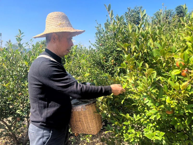 与樟桥村不同,杨桥村的油茶路走的是“能人带动”的路子。返乡村民黄龙刚承包了700亩山地种植油茶,成为村里的油茶种植带头人,说起产业前景底气十足:“现在还没到丰果期,等树长稳了,一棵预计能产五六斤油。我们搞的是订单农业,有公司签合同兜底,自己能销就自己销,销不出去他们就来收,一点不愁卖。”