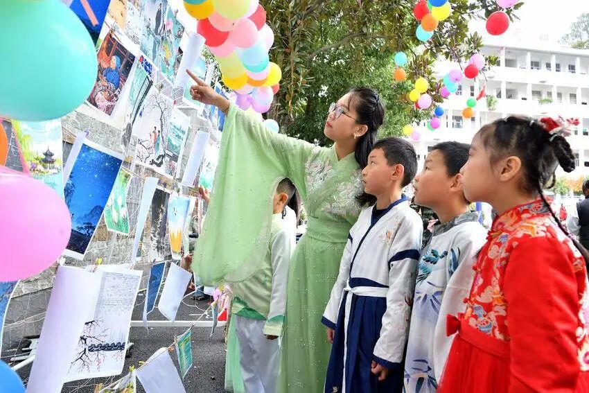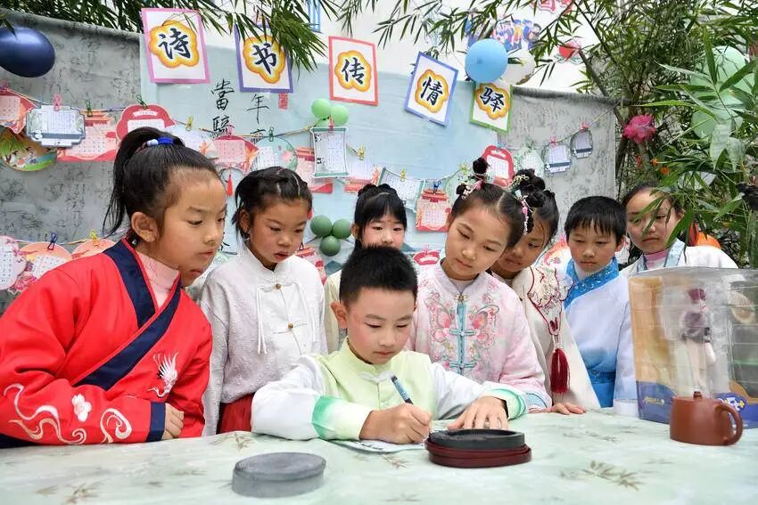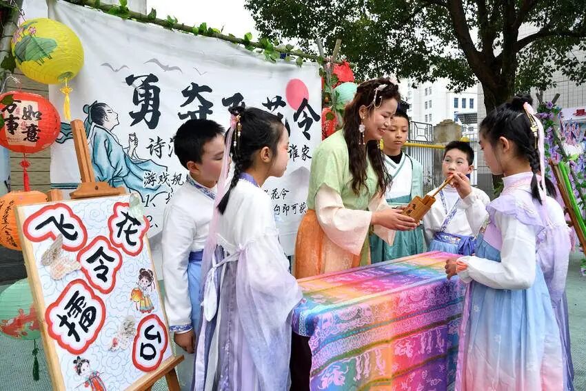 “我们把诗词的古典美和趣味性结合,让背诗、写诗、唱诗、画诗等融入游戏,就是想让中华经典在校园里‘活’起来,滋养孩子成长。”城关镇小学副校长余兴胡说。
