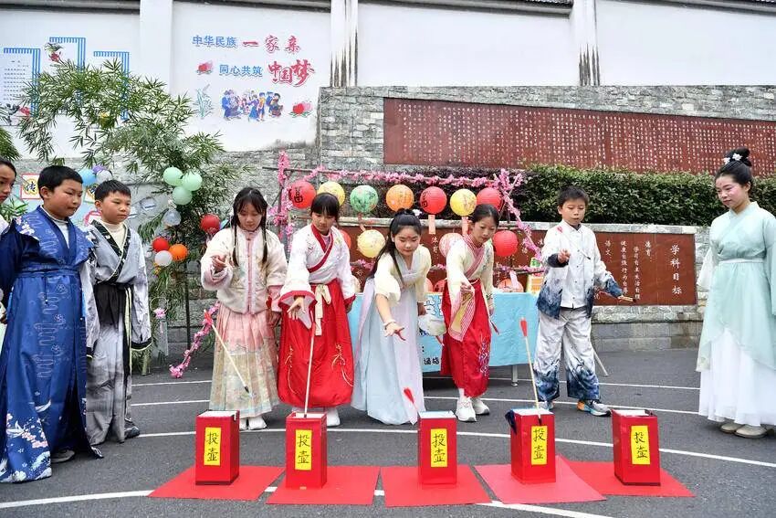 “像穿越回古代一样背古诗赢投壶,我攒了3个赞,特别有成就感!”城关镇小学学生屈欣潼兴奋地分享。