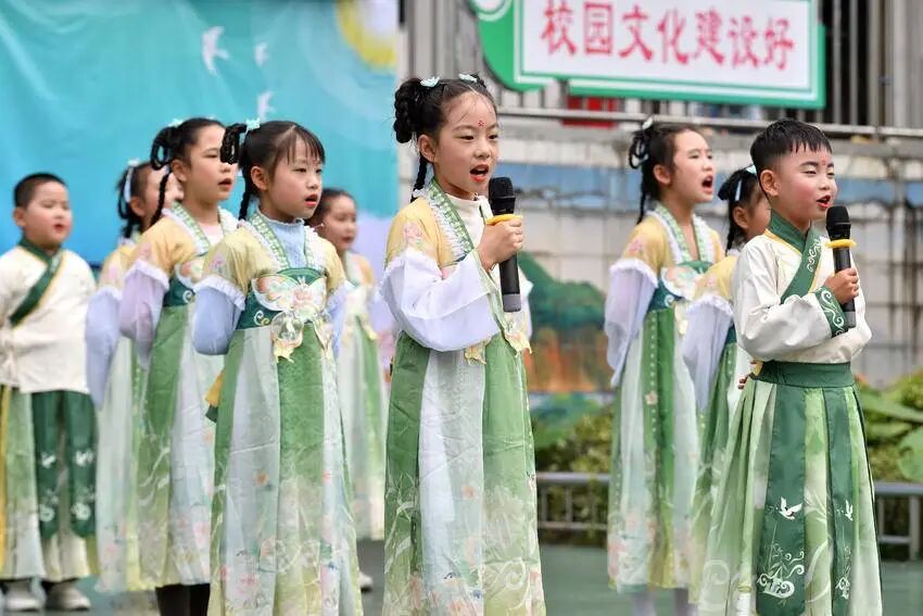 据了解,诗词教育早已成为城关镇小学的“常态课”:学校编写《诗韵雅集》校本教材、打造古诗词文化长廊、坚持课前3分钟经典诵读,还创编古诗词韵律操、举办诗词节,持续为校园注入诗意。
