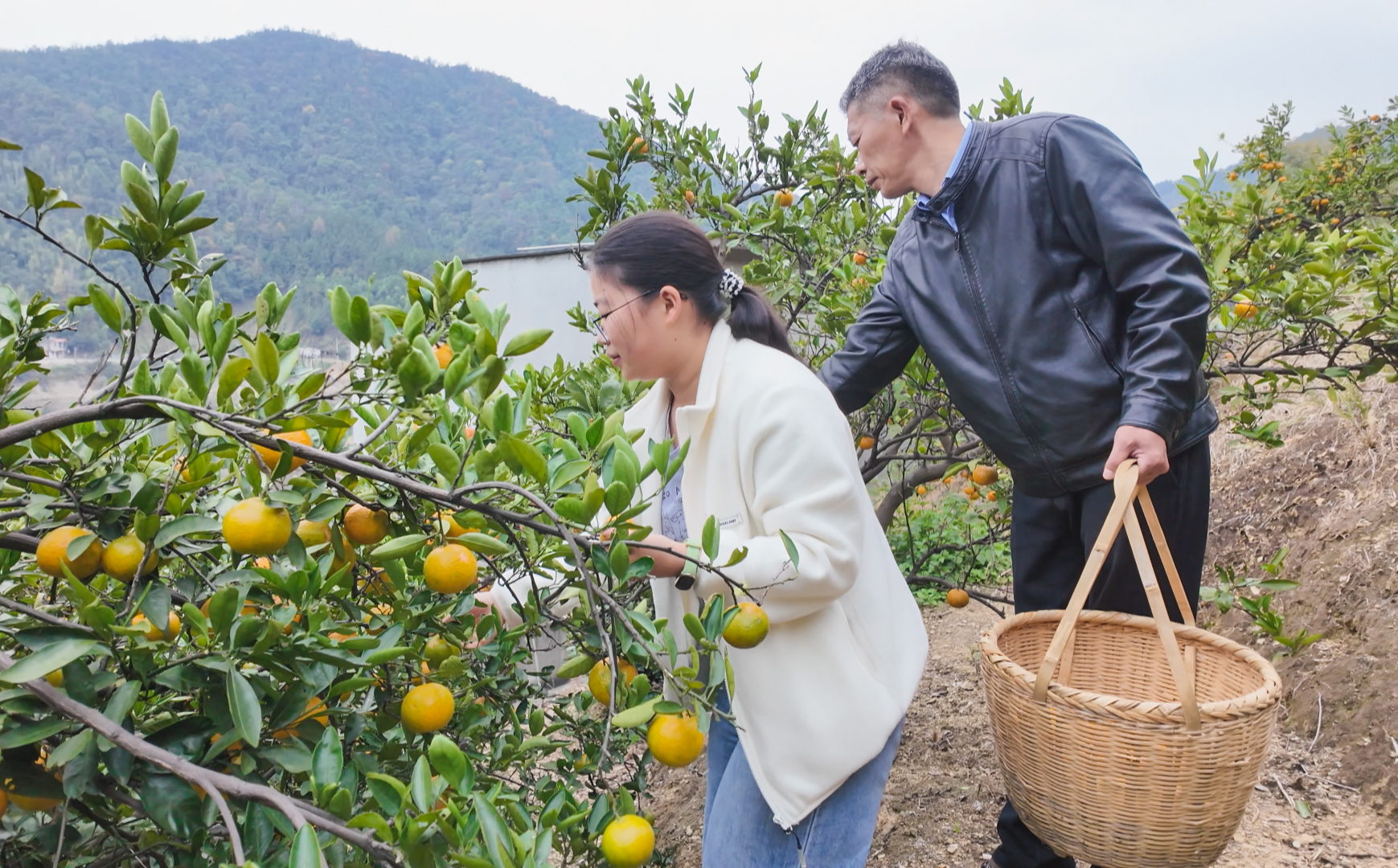 “我们金不村是一个山清水秀的地方,种出来的橘子特别好吃,清爽可口,甜蜜十足,现在已经全部上市了,欢迎大家品尝。”橘园里,肖岭乡金不村党支部书记沈炜平热情地邀请市民和游客前来采摘尝鲜。