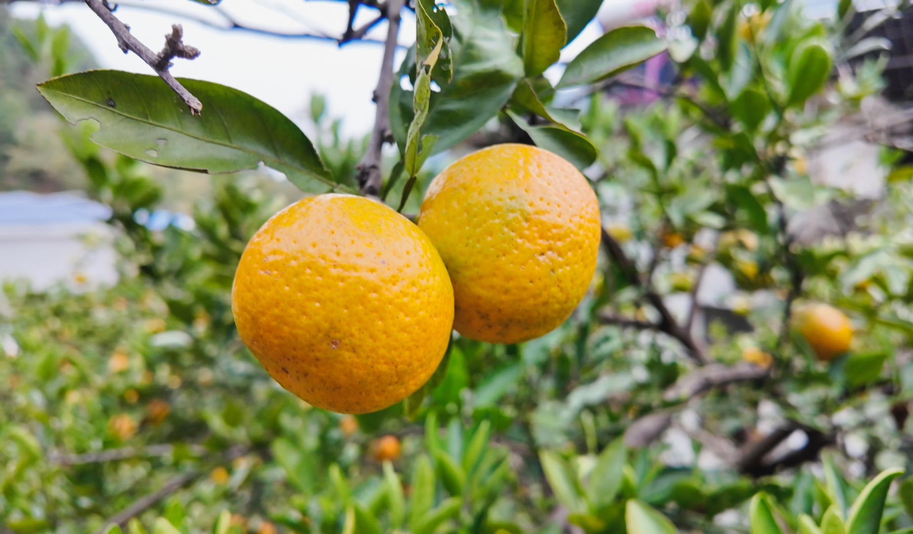 金不村的橘子品种为国庆一号,皮薄肉嫩、甜酸适口。这里的橘子能有这般好品质,离不开得天独厚的自然条件——金不村依台山水库而居,优质水源为橘子生长提供充足灌溉;加上村里的沙质土壤透气排水性好,利于橘子根系发育和糖分积累。
