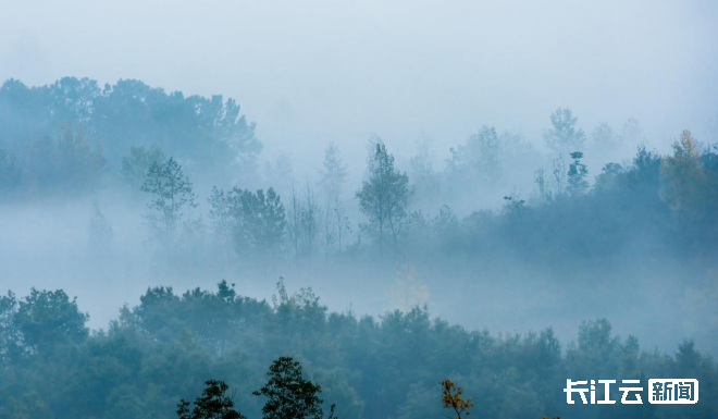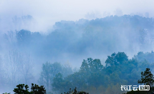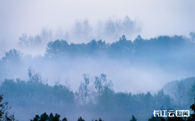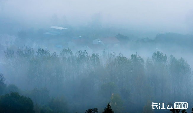 近日,襄阳市南漳县九集镇龙门集村沐浴在晨雾中,远山、薄雾、村落、民居共同构成一幅大美乡村图。