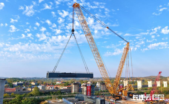 沿江高铁重要组成部分合武高铁特大桥钢盖梁吊装施工圆满完成