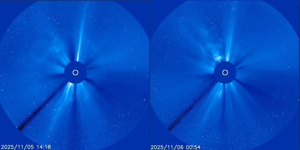 11月6日,据中国气象局国家空间天气监测预警中心消息,未来3天或现大地磁暴。北京时间11月5日晚间19时19分以及11月6日的清晨06时07分,太阳再次耀斑两连暴,最大强度分别为M7.4级和M8.6级,并伴随较为明显的日冕物质抛射(CME)。