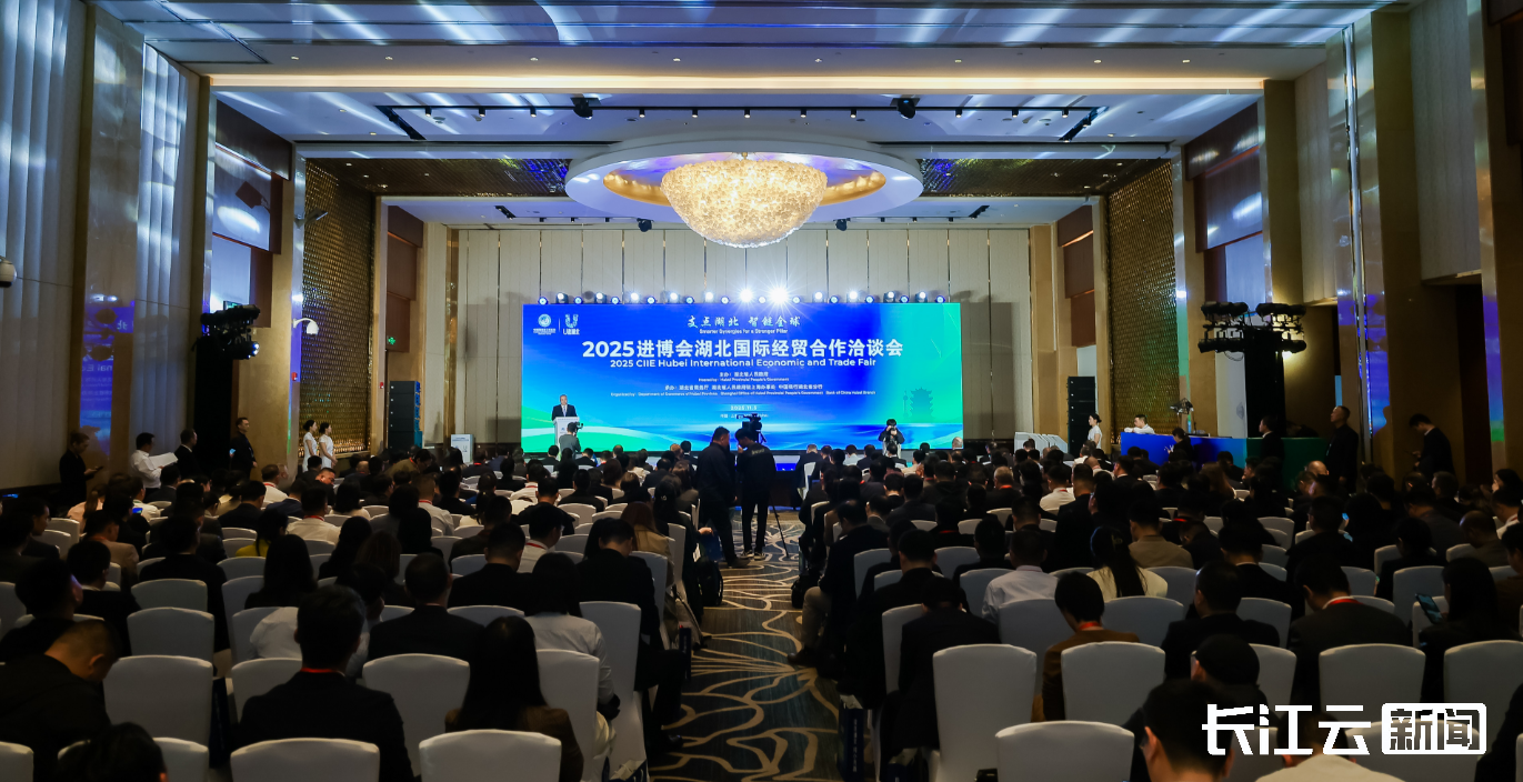 11月5日,2025进博会湖北国际经贸合作洽谈会在上海举办。洽谈会以“支点湖北 智链全球”为主题,吸引了约400位世界500强和知名跨国公司代表参会,共同探讨湖北在产业升级、绿色转型和科技创新中的新机遇。