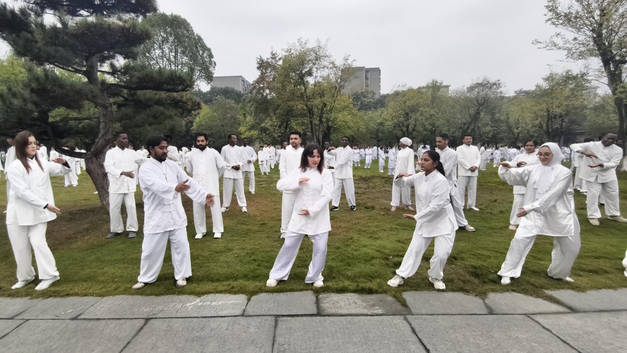 ▲2025年10月25日,在武当山玉虚宫举行的2025国际武当太极文化节开幕式迎宾环节,来自各国的太极爱好者上演 “千人太极”表演。(徐刚摄)